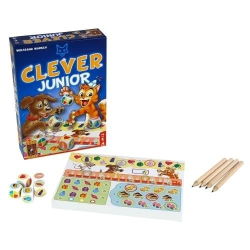 Clever Junior is een versimpelde en vrolijke versie van het populaire dobbelspel Clever. De spelregels zijn makkelijk te leren. Dankzij de bekende Clever-opzet, het kiezen uit een aantal dobbelstenen en de rest doorgeven aan je medespelers, hoeft niemand lang op zijn beurt te wachten.