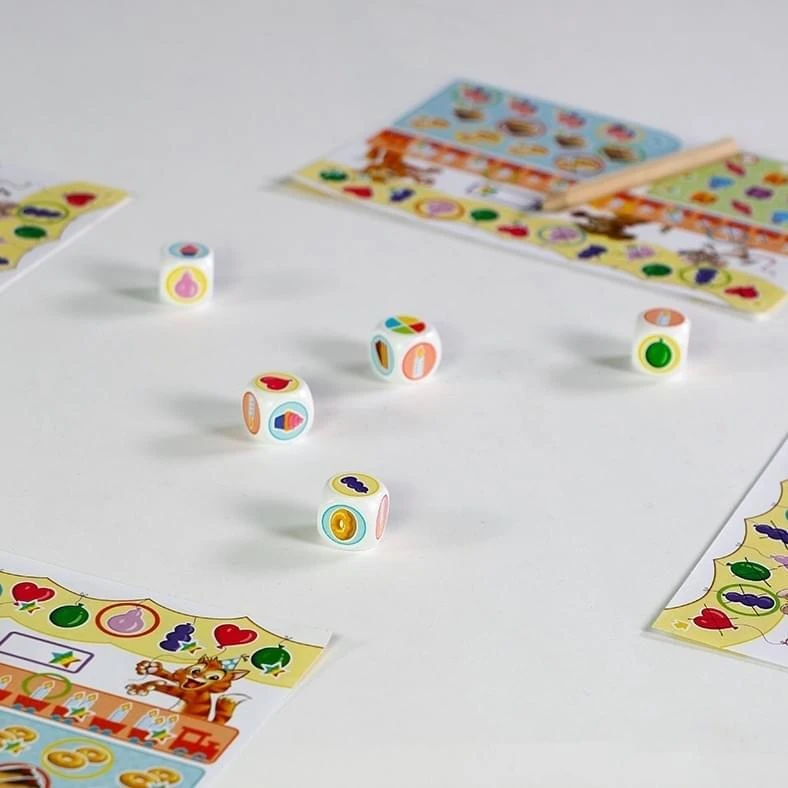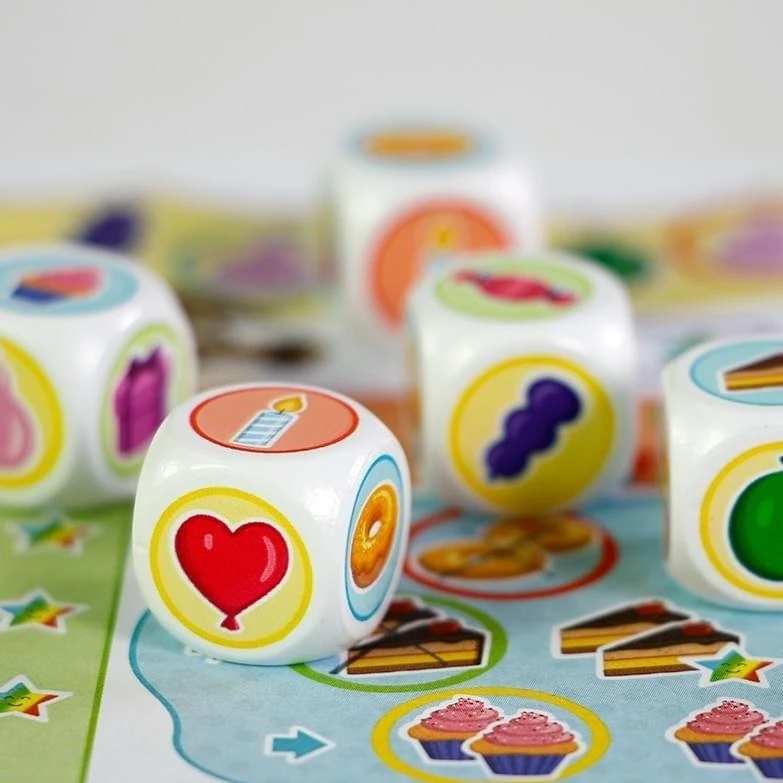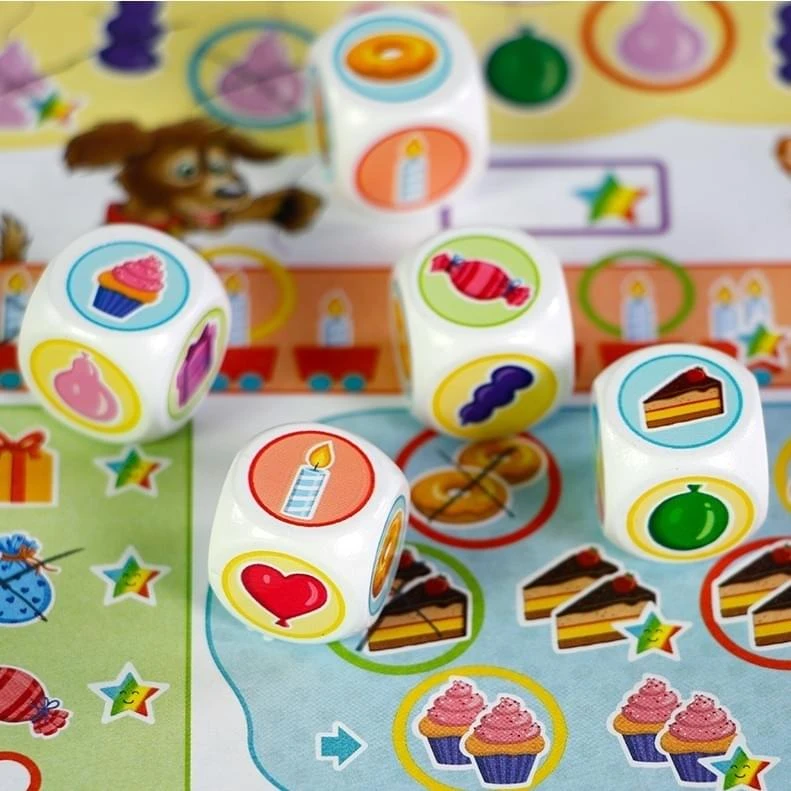 Tijd voor een feestje! Een goed feestje heeft ballonnen, kaarsen, taartjes en natuurlijk ook cadeautjes. Wie hier genoeg van verzamelt, krijgt regenboogsterren. Wie de meeste regenboogsterren scoort, wint het spel. Tijd om te dobbelen!