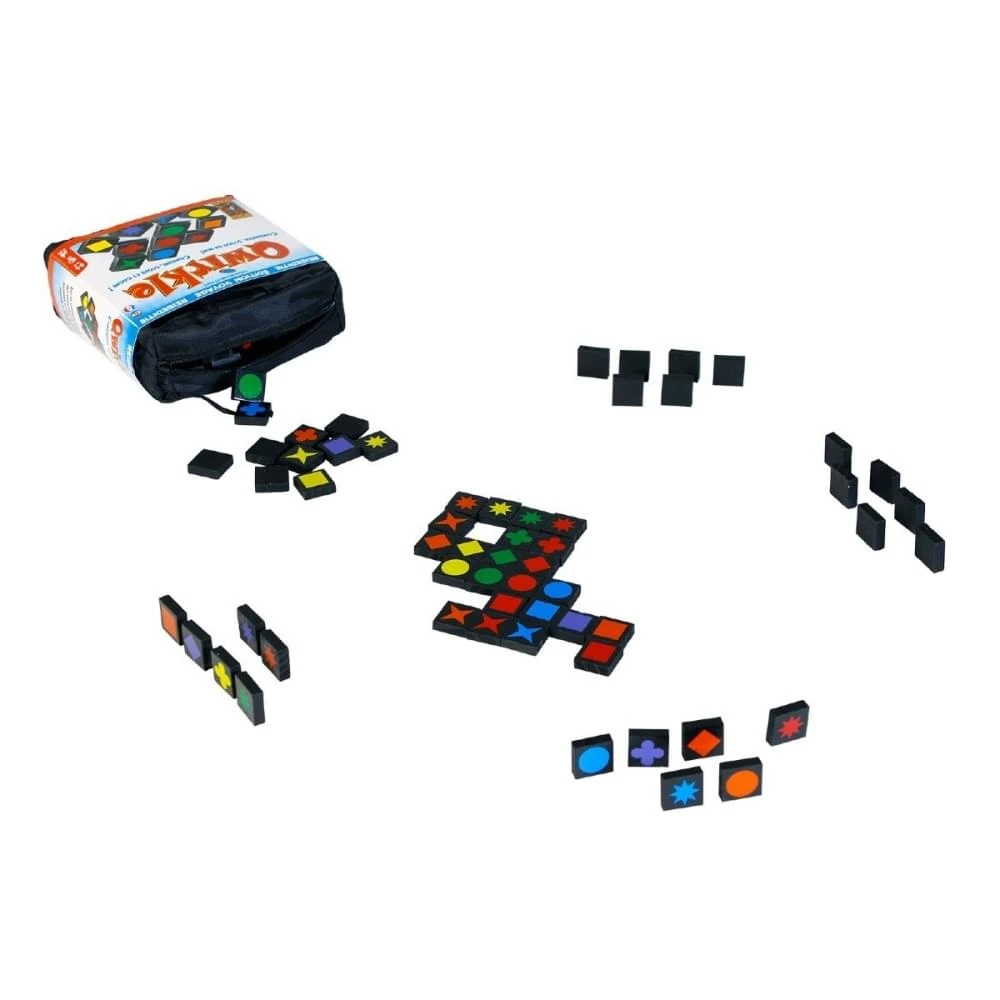 Combineer en scoor. Abstract spel dat al veel prijzen gewonnen heeft. Vorm rijen van gelijke kleuren of symbolen. De zesde in een rij leggen, de zogenaamde Qwirkle, levert 6 bonuspunten op!