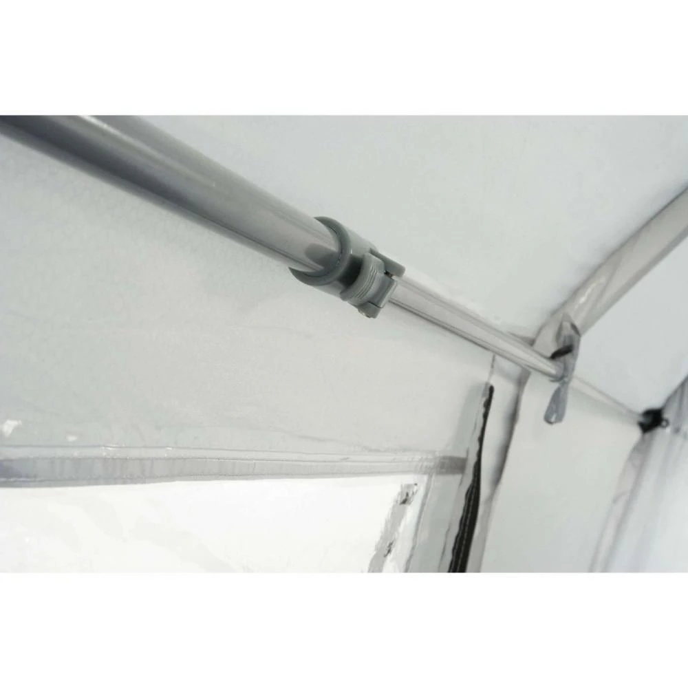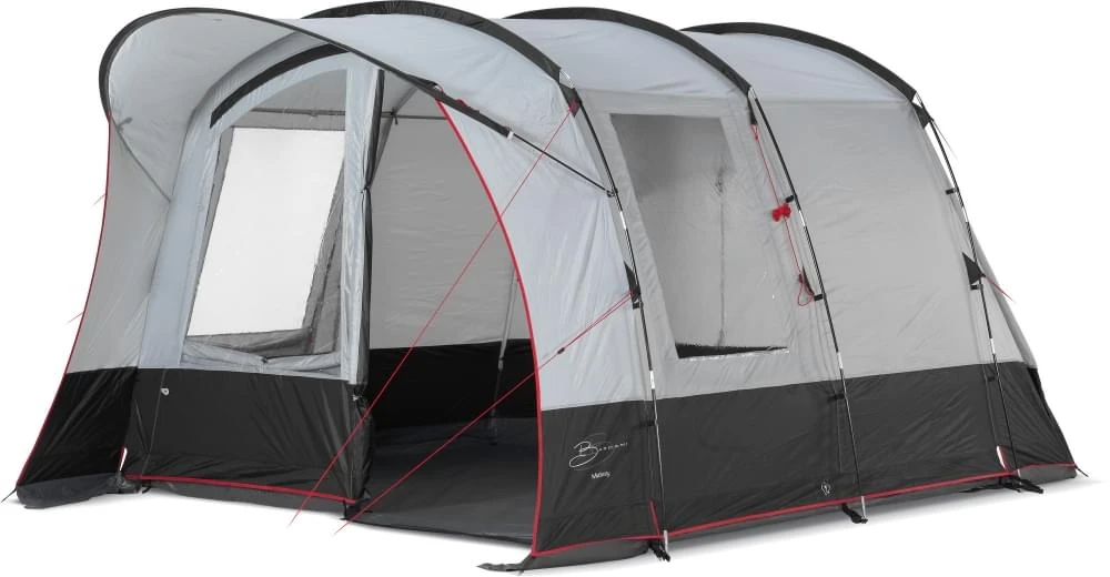 De Midway is een ruime bustent voorzien van glasfiber tentstokken en stalen nokstokken. De bustent heeft een vaste half ovale luifel en een wegrolbare voorwand. Met 8 m2 binnen heb je voldoende ruimte om je kampeerspullen neer te zetten. Onder de luifel heb je nog eens 2 m2 tot je beschikking wanneer je de voorwand wegrolt.