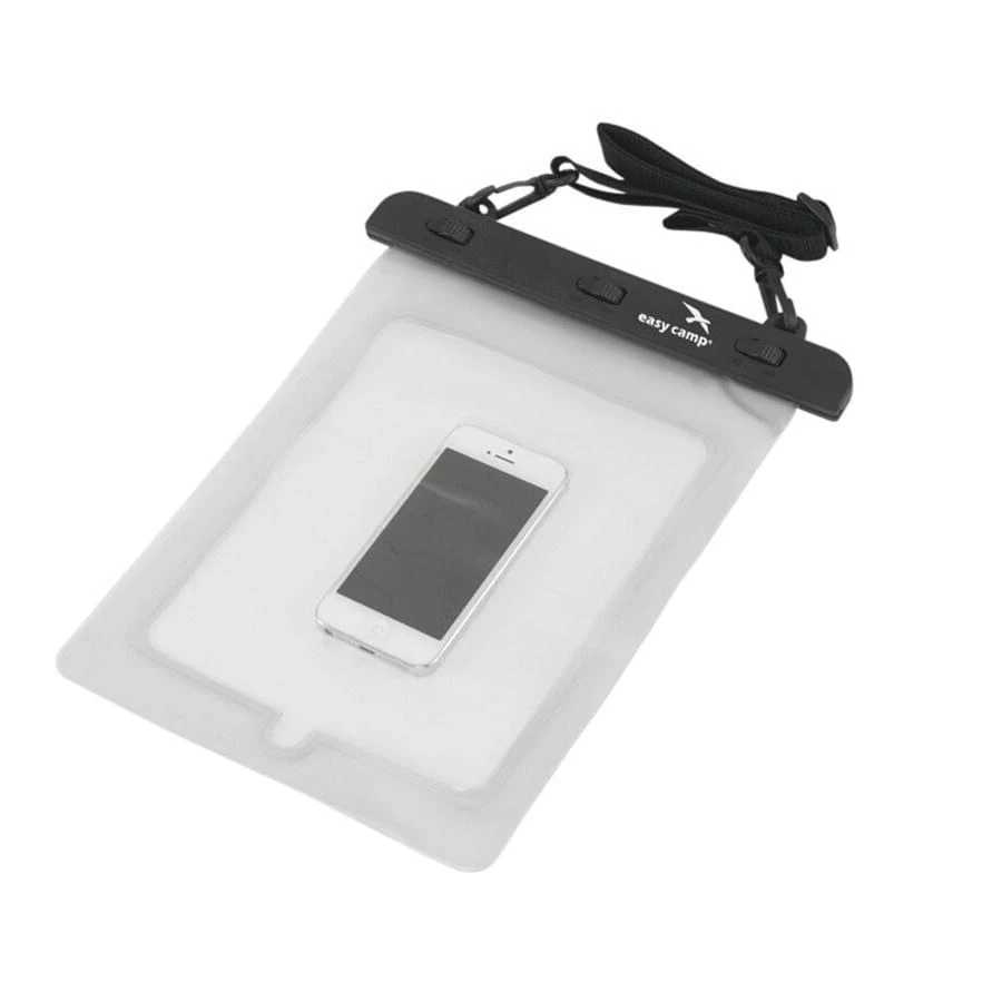 Ga je varen, verwacht je regen wanneer je gaat wandelen of fietsen? Dan is het wel fijn dat je je tablet of smartphone droog op kunt bergen. Wanneer je telefoon of tablet in de waterdichte hoes van Easy Camp zit blijft hij droog, zelfs als hij in het water valt (tot een diepte van 1 meter). Wat ook fijn is , is dat je het touchscreen van je telefoonof tablet kan blijven gebruiken terwijl hij in de waterproof hoes zit.