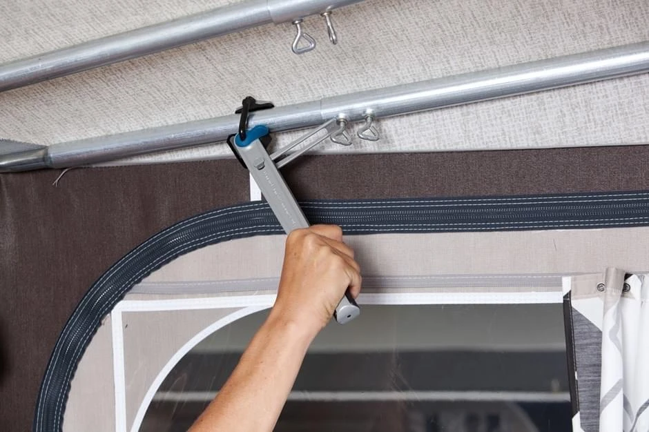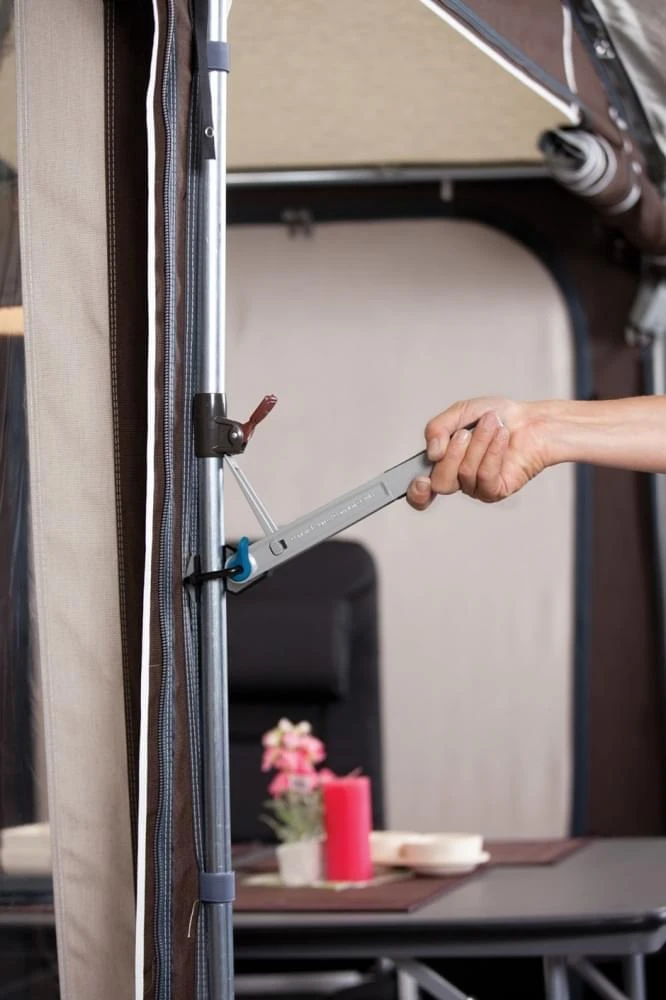 Met een framespanner worden alle onderdelen van de tent gelijk belast en komt dit de levensduur van je tent ten goede. Flapperen van het tentdoek wordt voorkomen en de tent staat stabieler.