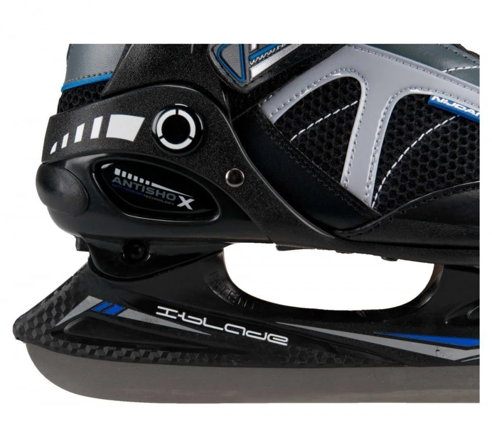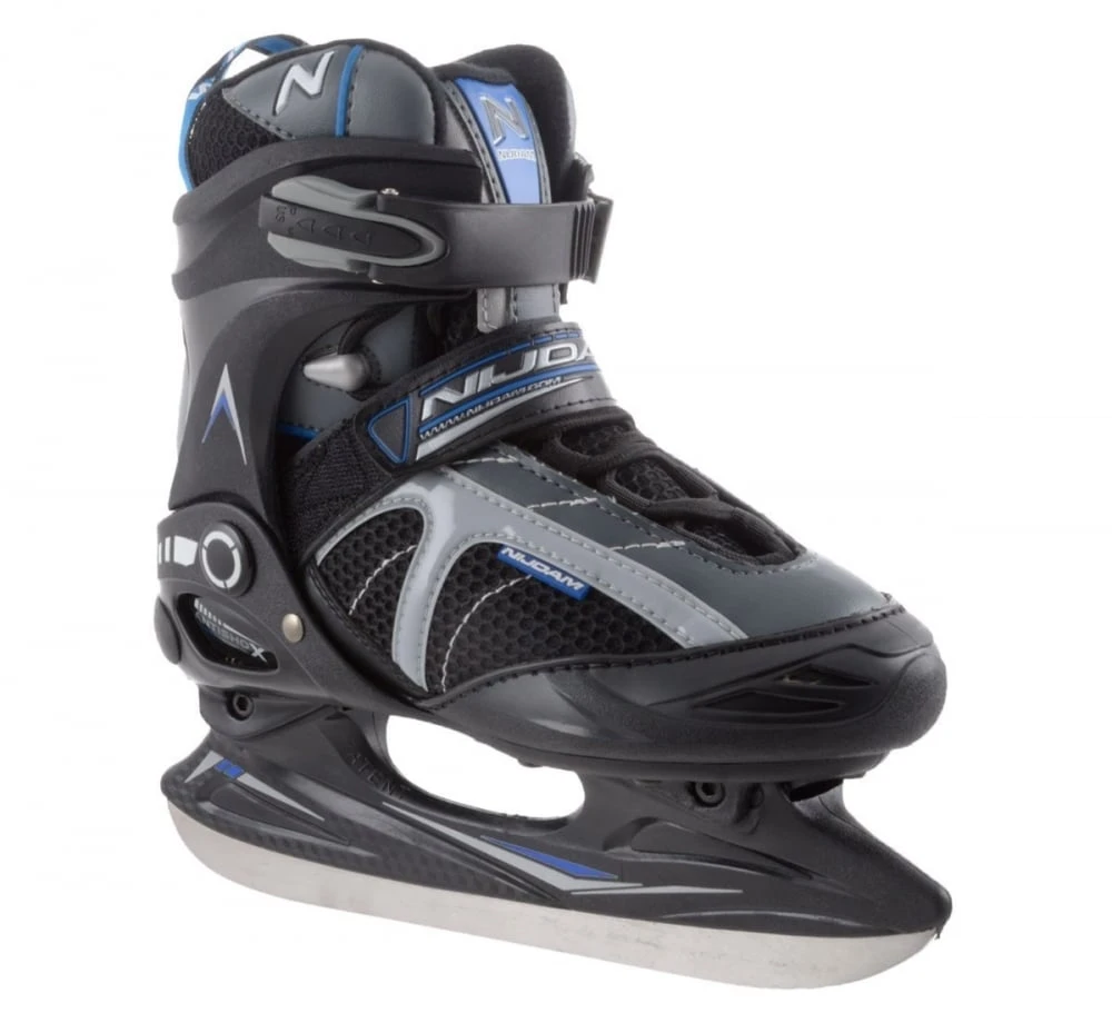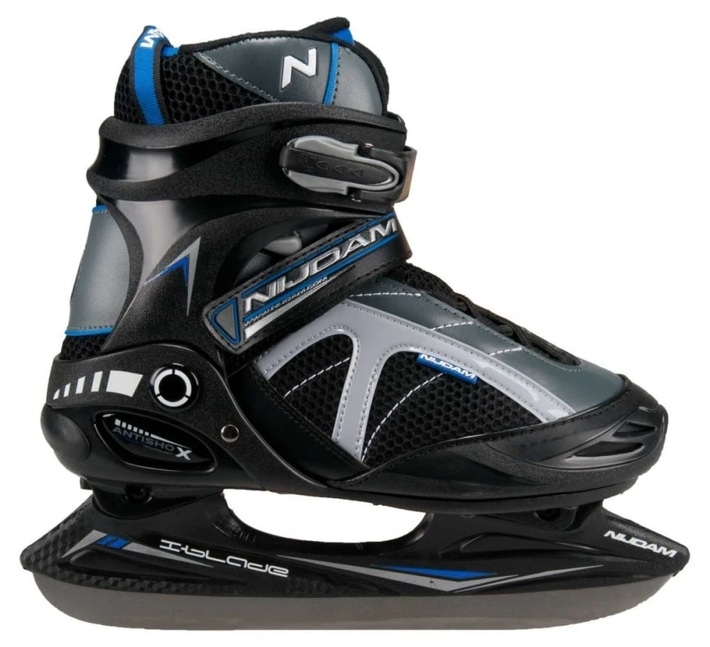 De Nijdam IJshockeyschaats is een schaats met een comfortabele semi-softboot. De schaats bestaat uit PVD leder en een mesh gedeelte. De tweezijdige snelsluiting, vetersluiting en een wreefband met klittenband zorgen voor een stevige en goed zittende schaats. De schaatsijzers zijn gemaakt van roestvrijstaal.