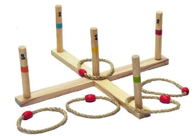 Een ringwerpspel mag natuurlijk niet ontbreken op de camping. Wie kan er de touwringen om de palen met de meeste punten gooien? Om het spel wat moeilijker te maken zet je het frame met palen gewoon een stukje verder weg.