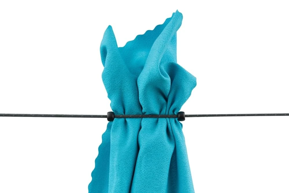 Om spullen te drogen schuif je eenvoudig de kralen naar elkaar toe om het item vast te klemmen. Het grote voordeel is dat het niet gaat schuiven waardoor je was weer op de grond ligt. The Clothesline is goed reflecterend zodat je ’s avonds niet verrast wordt wanneer je met de zaklamp rond schijnt.
