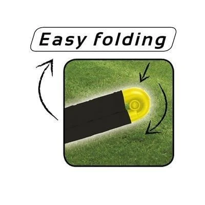 Op de hoekpunten van de goals zit een scharnier zodat je ze alleen maar uit hoeft te klappen en neer hoeft te zetten. Met de meegeleverde haringen kan je de goals ook nog in de grond vast zetten.