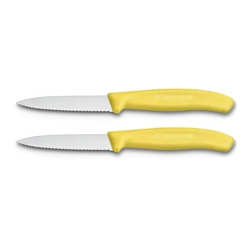 Deze 2 gekartelde Victorinox mesjes zijn ideaal om te snijden of te schillen. De mesjes zijn vaatwasserbestendig.