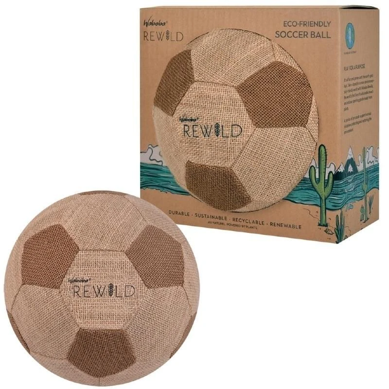 De Rewild voetbal is milieuvriendelijk en gemaakt van natuurlijke materialen zoals de juteplant en de rubberboom. De voetbal heeft een diameter van 23,5 cm. Ook de verpakking van de voetbal is eco vriendelijk en gemaakt van gerecyclede materialen. Waboba schenkt een deel van de opbrengst aan organisaties de zich inzetten voor het herstel en de bescherming van het milieu.